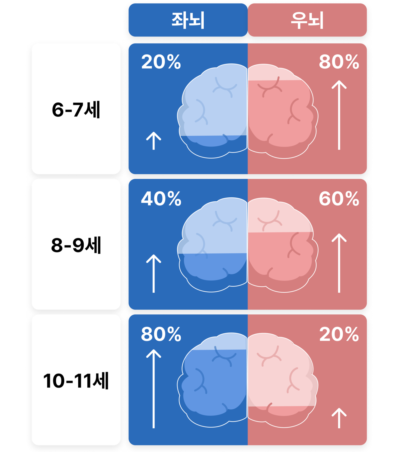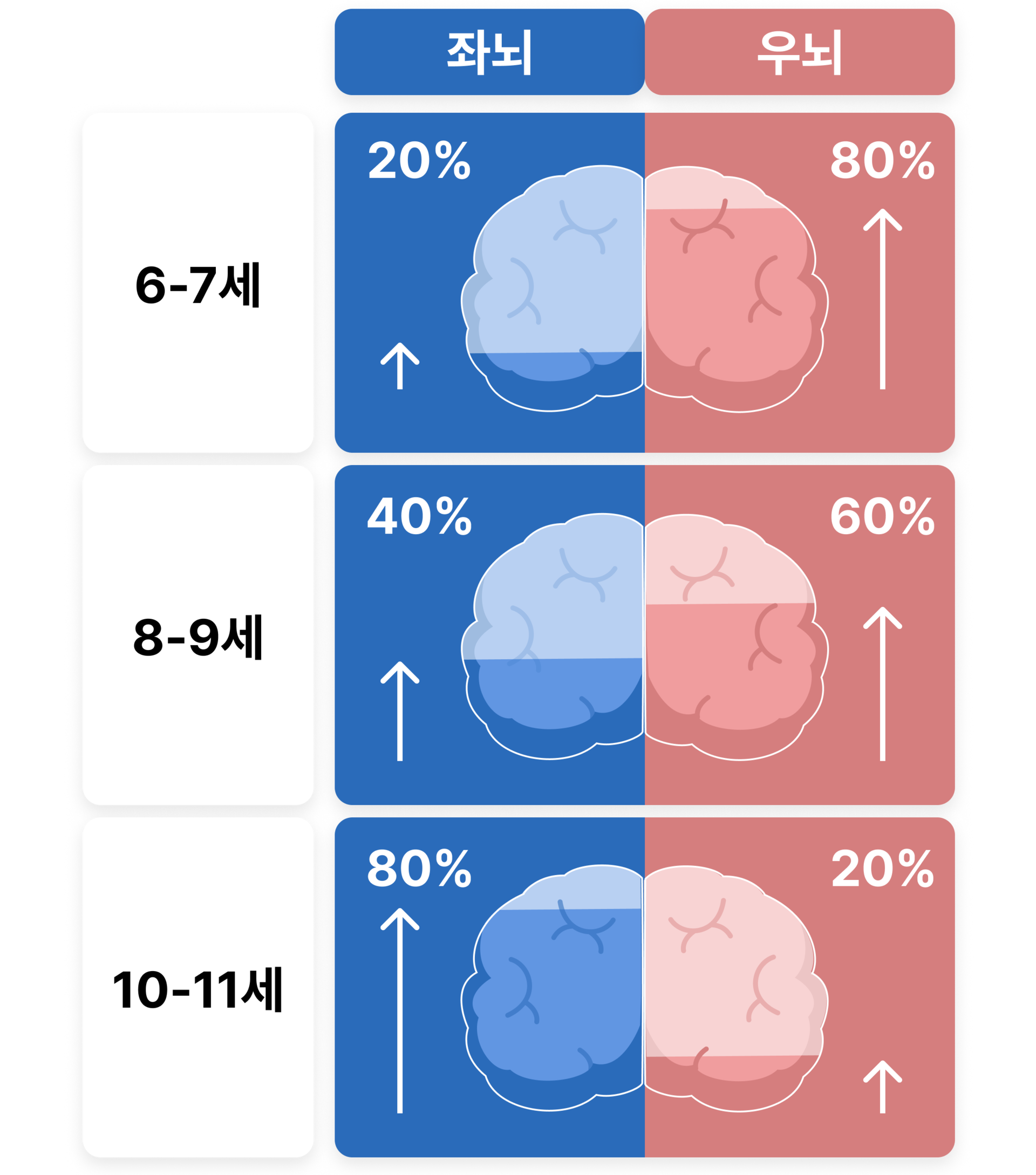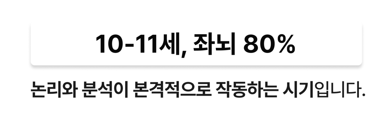 10-11세는 우뇌 20, 좌뇌 80